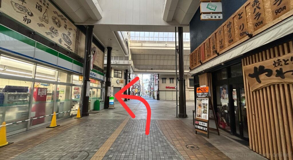 徒歩で行くルートはいくつかあるのですが、今回お伝えする道順が一番雨に濡れない道かなと思います(商店街の中を通るので)。ちなみに15分も歩きたくない人は、バスやタクシーの利用がオススメです。