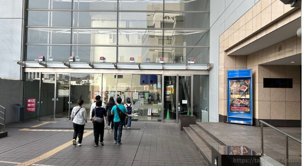 iichiko総合文化センターが入っているOASISひろば21の入口が見えてきます。