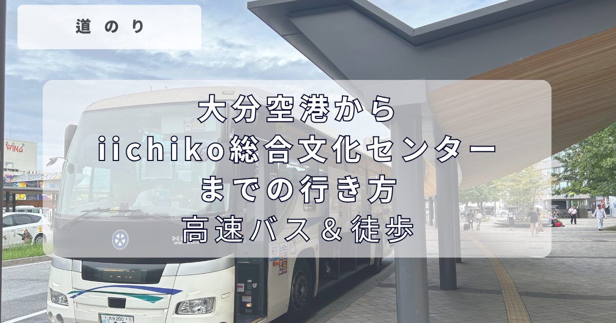 空港から高速バスで大分駅まで約1時間、大分駅からiichiko総合文化センターまで徒歩15分かかります。イベント当日に大分空港から会場に行く場合は、飛行機の遅延や渋滞など想定して、早めの便を利用するのがベストです。